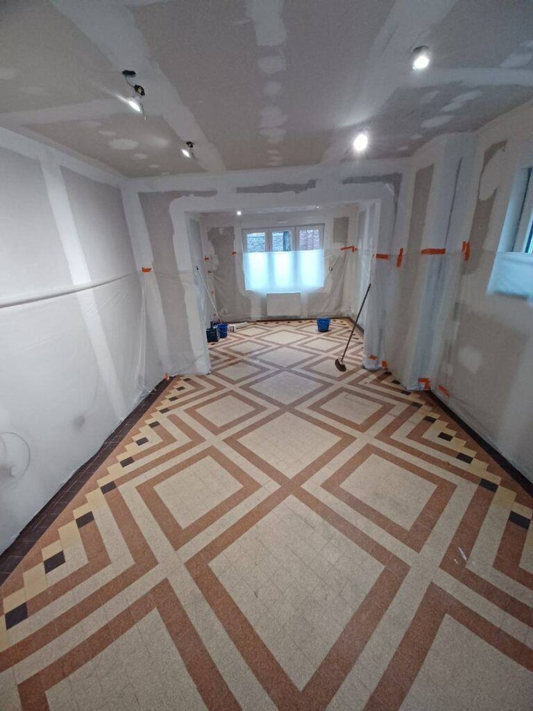 À Iwuy, DPZ RENOV a pris en charge la rénovation complète du sol d’une pièce de vie, avec la pose d’un carrelage grand format finition béton ciré. Avant la pose, un ragréage a été effectué pour assurer une surface parfaitement plane.